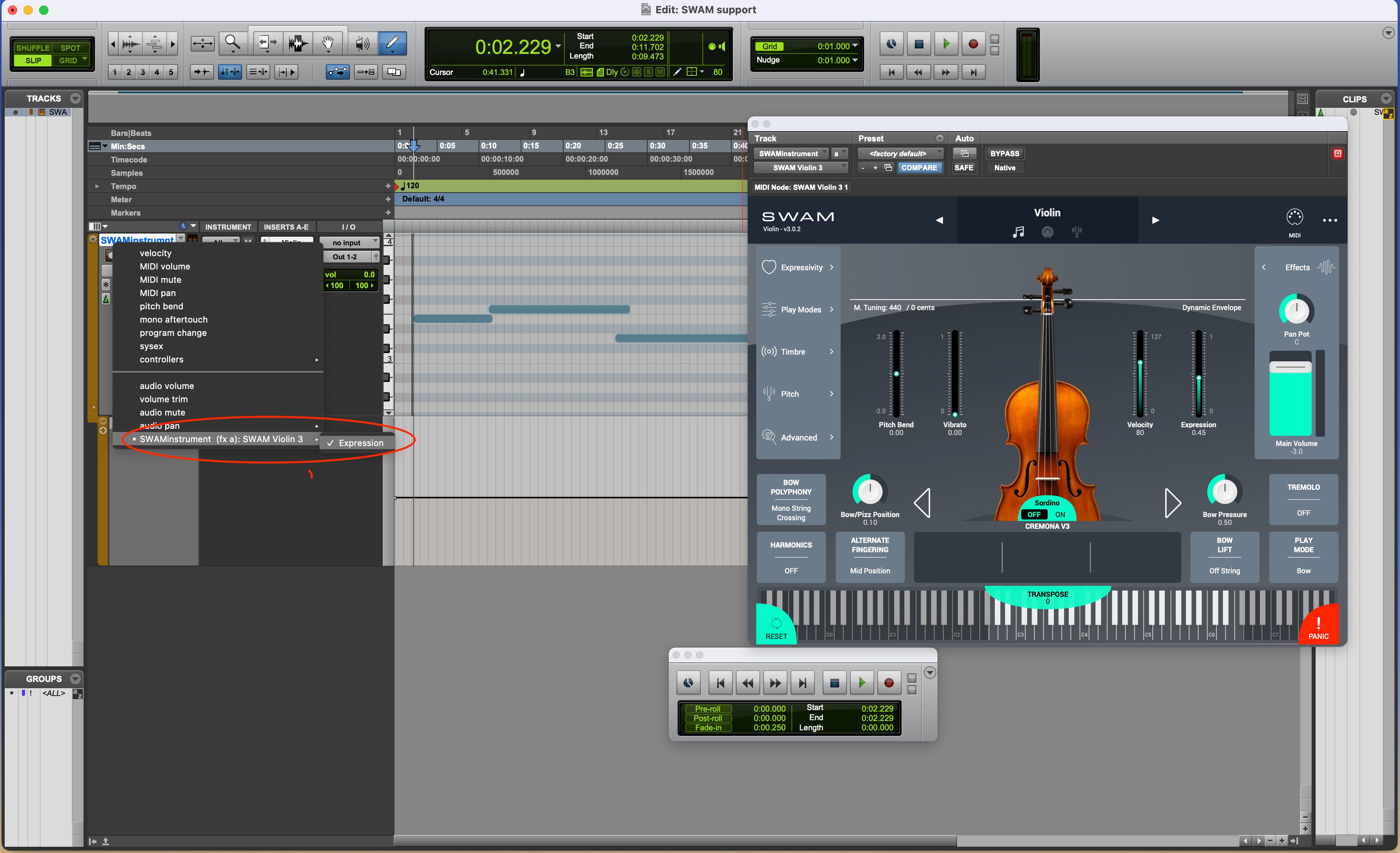 Note: By default, Pro Tools filters Aftertouch messages. This prevents controlling SWAM instruments and other plugins through expressive controllers, like the Seaboard or the LinnStrument. To remove the filter, go to Setup Menu > MIDI > Input Filter .