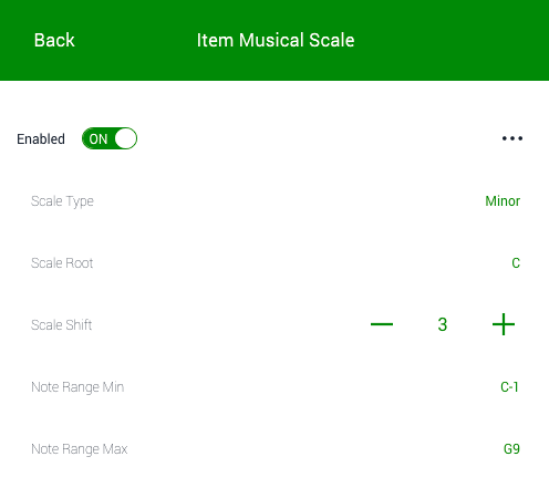 Figure 7 - One way to automatically generate a parallel diatonic harmony is with the Musical Scale MIDI transformer. Scale Type has been set to Minor to keep it diatonic, and Scale Shift has been set to 3 semitones, to make it a minor third up (except where the scale demands otherwise).