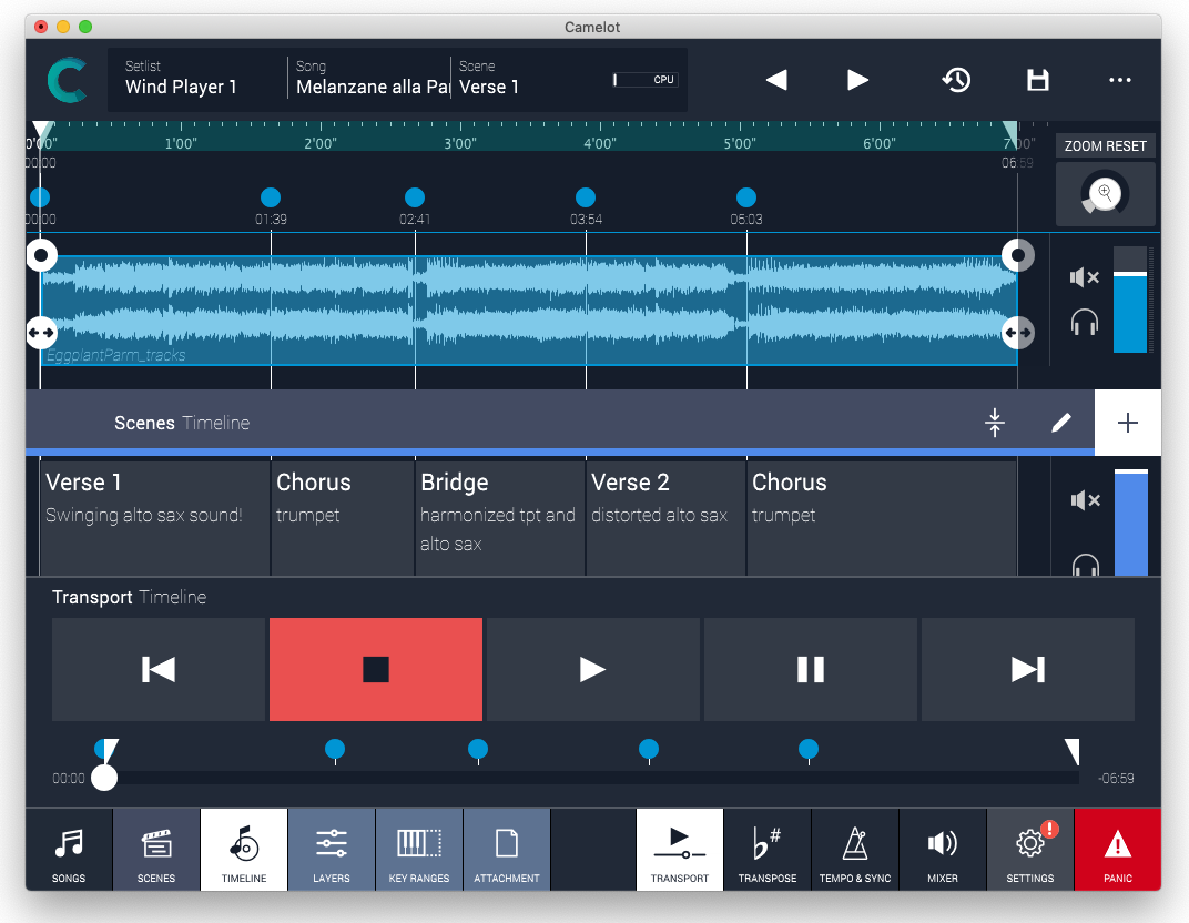 This gives you just a small taste of what Camelot can do for you as a wind player. There are so many other things that can be done, and other ways to do the things shown here. Camelot lets you do what you need to do, working in the way that is the most comfortable for you. Give it a try and you’ll be amazed that you ever gigged without it!